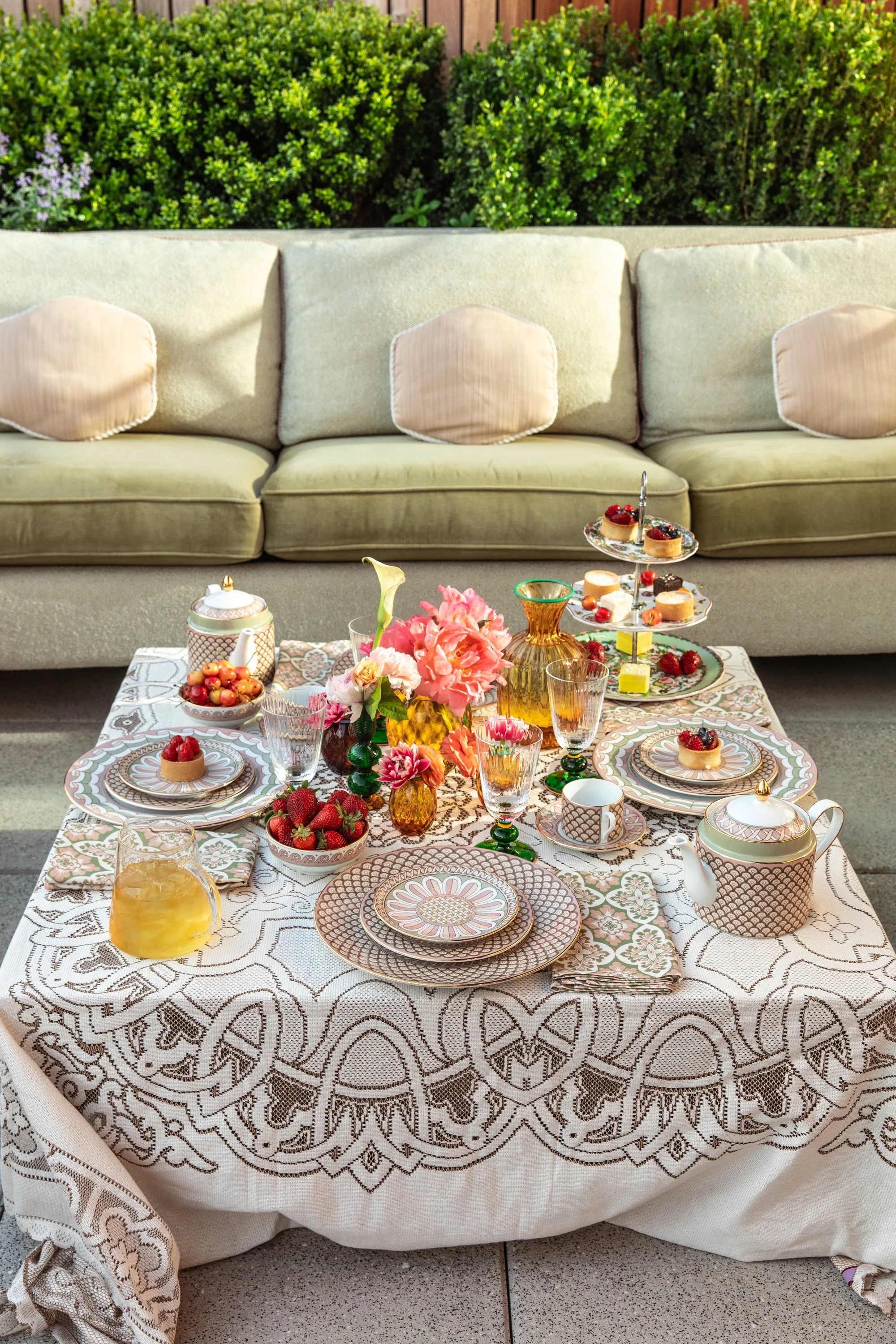 Fouquet’s New York proudly presents High Iced Tea, an elevated seasonal experience created in partnership with iconic Italian lifestyle brand La DoubleJ. Designed as a warm-weather twist on traditional afternoon tea, the offering blends al fresco charm with Manhattan sophistication. Served on La DoubleJ’s vibrant Napoli Rosa linens and plateware—featuring a lively pistachio-and-rose motif inspired by the Italian Riviera—the tea service captures the refined yet playful aesthetic shared by both brands. Executive Chef Mathew Woolf curates a menu of seasonal tea sandwiches, delicate pastries, and refreshing iced teas, with the option to enhance the moment with a spirited upgrade.