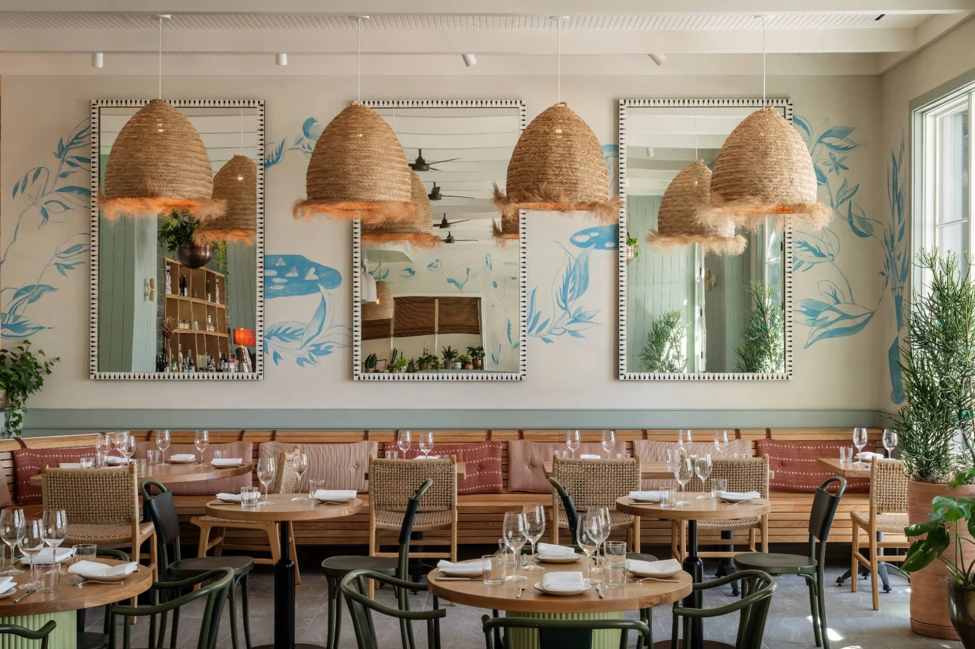 Dining at FORTH is as much about experience as it is about flavor. Il Premio delivers fine Italian cuisine in an elegant setting, complete with an open wood-fired kitchen and a hand-painted mural depicting the Palio di Siena that wraps around its cocktail lounge. The menu features caviar, oysters, prime cuts, tableside martini service, and an extensive wine list. Bar Premio, located just off the lobby, offers all-day dining—from espresso in the morning to aperitivos at dusk. On the fourth floor, Elektra serves Mediterranean-inspired dishes in a sunlit space adjacent to the pool, ideal for daytime lounging or casual dinners.
