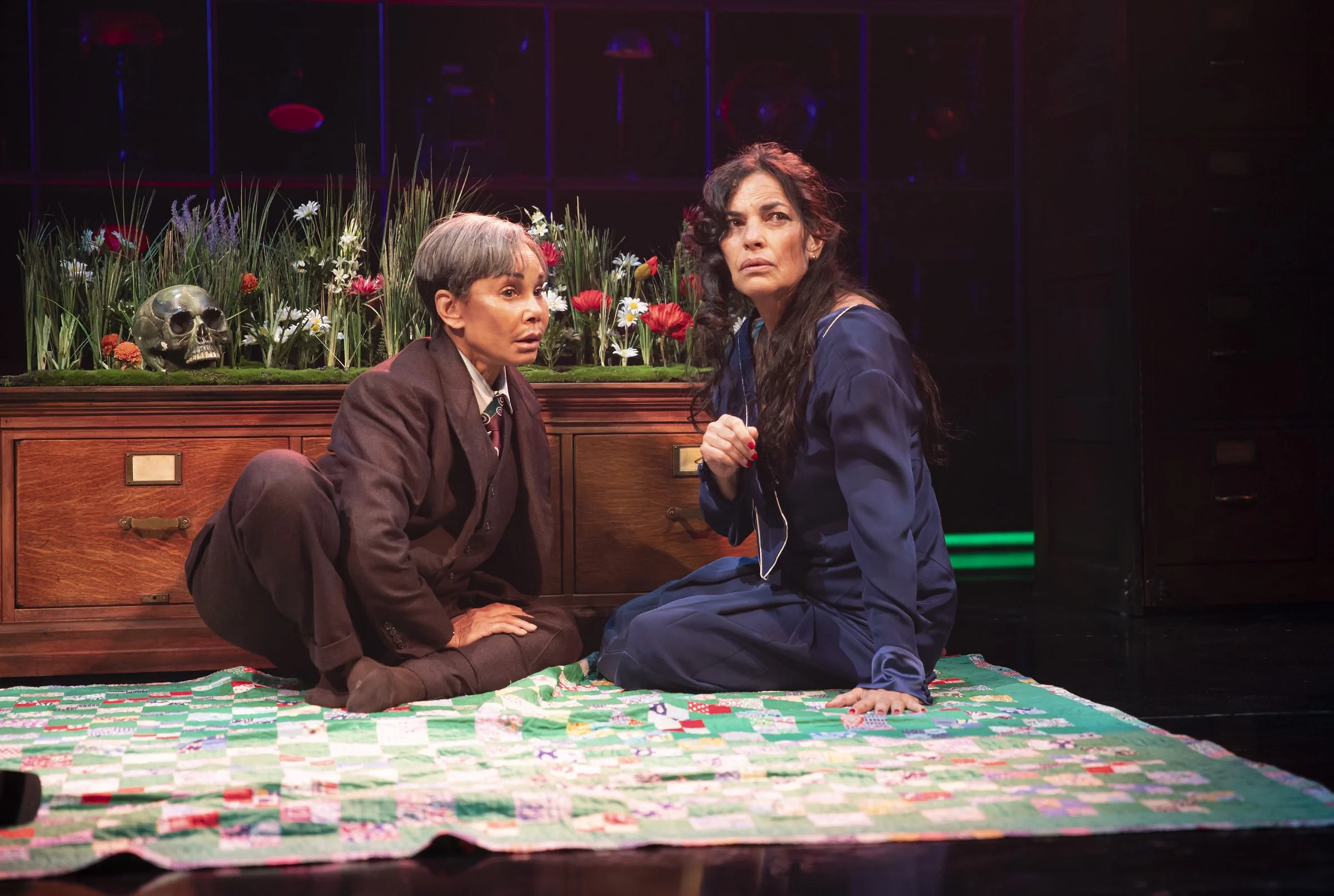 You feel the production's ambition immediately in the performances. Led by Daphne Rubin-Vega (almost unrecognizable), and joined by the hilarious Jennifer Tilly, joyful Sarita Choudhury, and Michael Cyril Creighton, the ensemble moves between absurdist comedy and something more unnerving with striking precision. The tone never fully settles — it oscillates, unsettles, provokes. Laughter arrives, but not always comfortably. That tension is by design, and the cast holds it throughout.